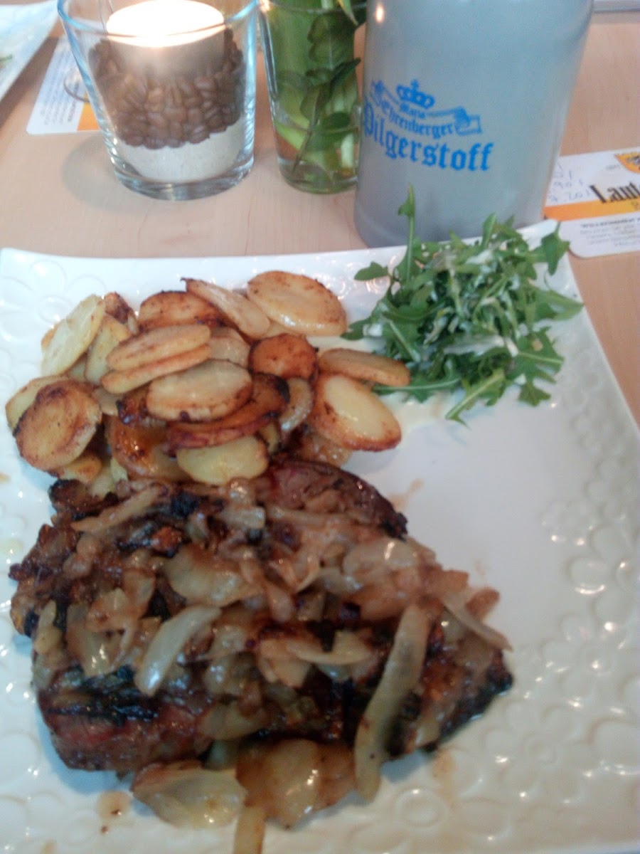 For those who enjoy hearty sides, the Beilagensalat (side salad) and Portion Pommes Frites (portion of French fries) are perfect accompaniments to any main dish. The crisp, fresh salad pairs well with the bold flavors of the steak or schnitzel, while the perfectly fried pommes frites make for a satisfying side dish.